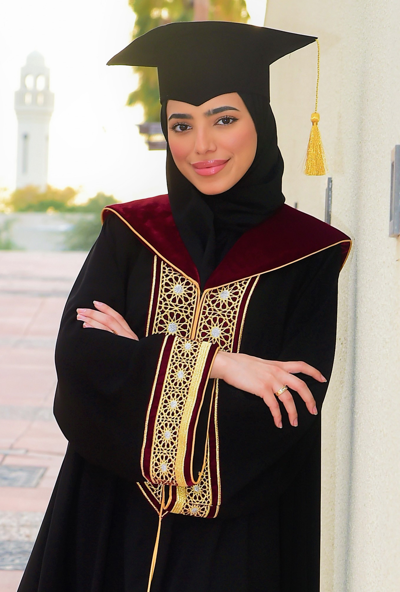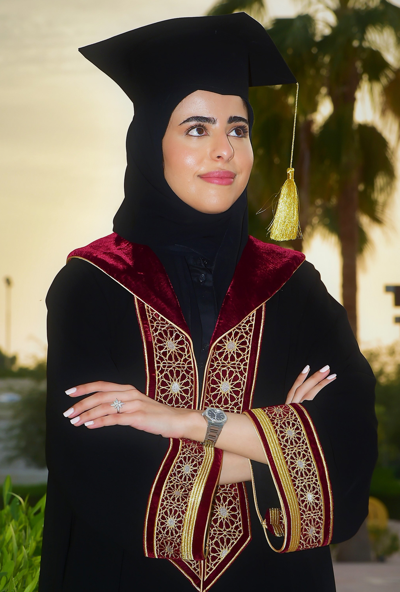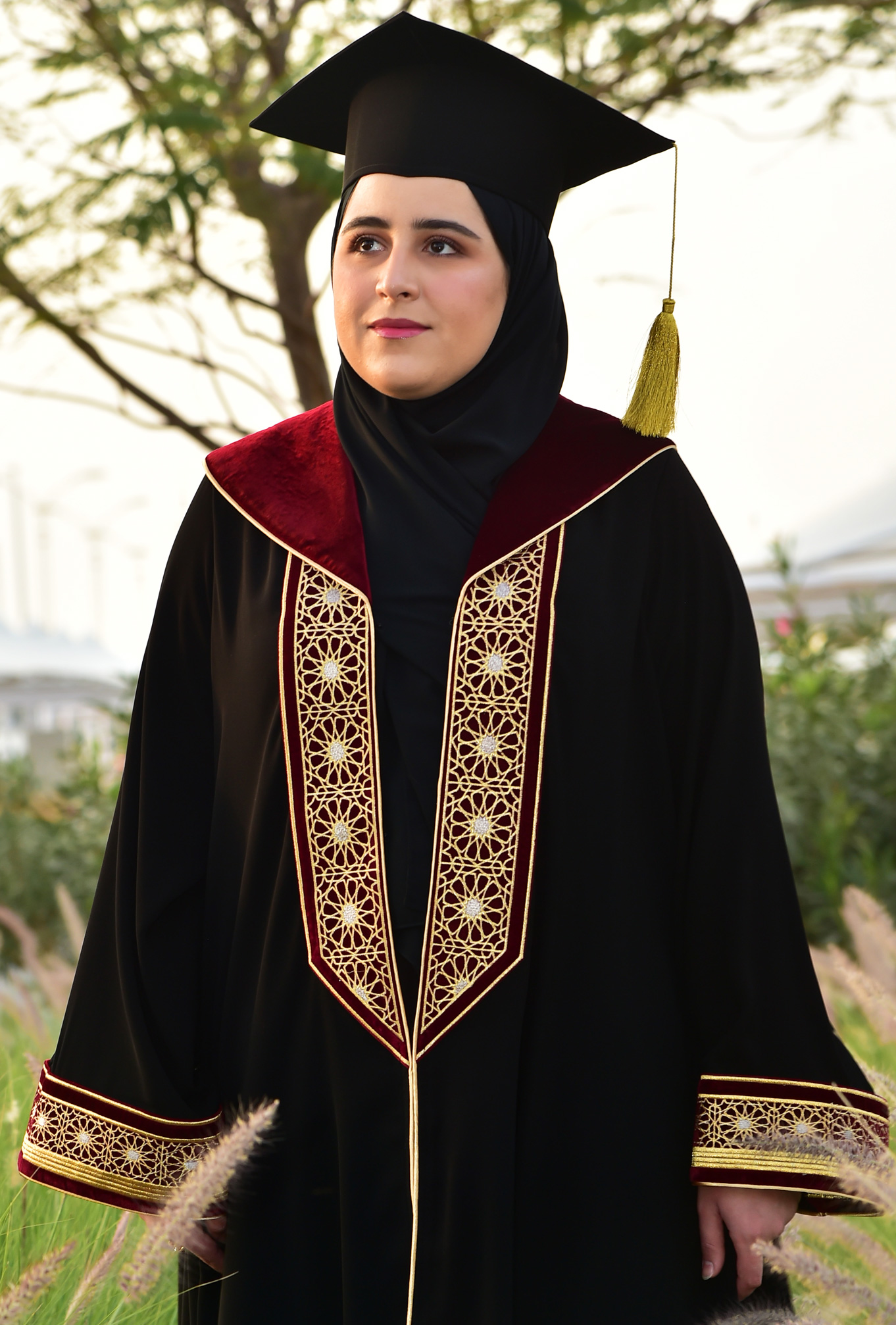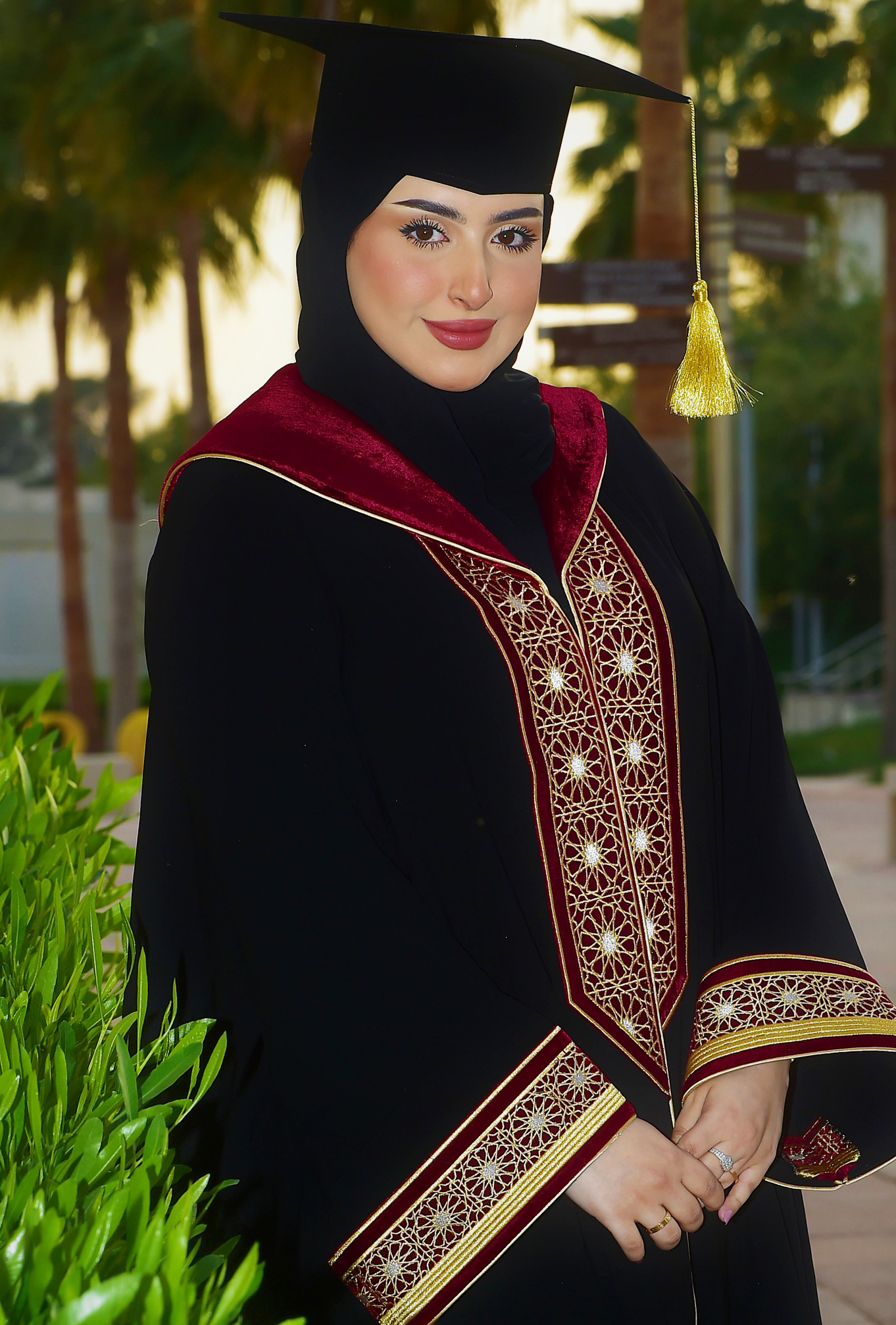• ارتداء زي التخرج إلزاميٌّ لجميع الخريجات في حفل التخرج، ولن يُسمح بإجراء أيِّ تعديلات على تصميم الزي، ولكن يسمح بتعديل المقاس فقط.